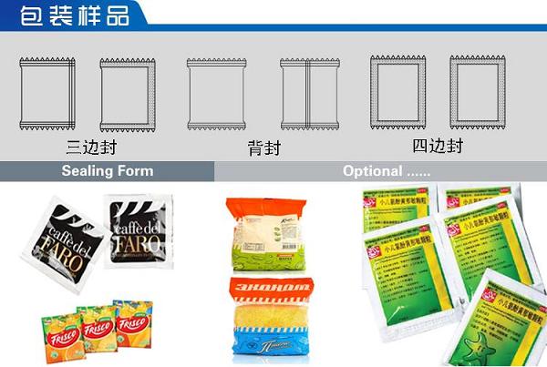 小袋全自動(dòng)粉體包裝機(jī)可以做的袋型:三邊封袋、四邊封袋、背封袋
